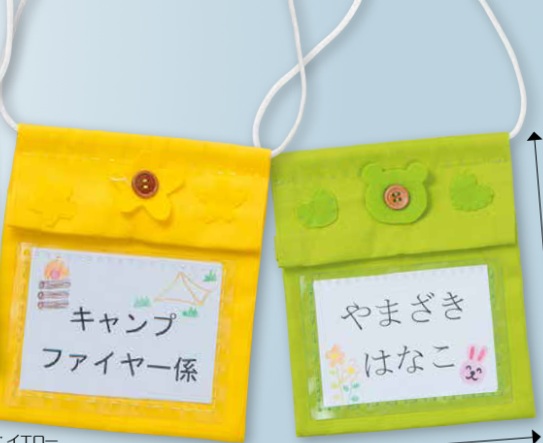 ①ポケット付なのでネームホルダーとしてだけでなく多目的に活用できます。学校行事の様々な場面に使えます。(使用例は右側を参照して下さい。)