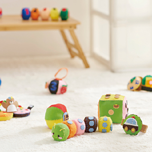 ①基礎縫いを学習しながら顔やポケット部分のデザインを考え、オリジナルのマスコットクリーナーが作れます。